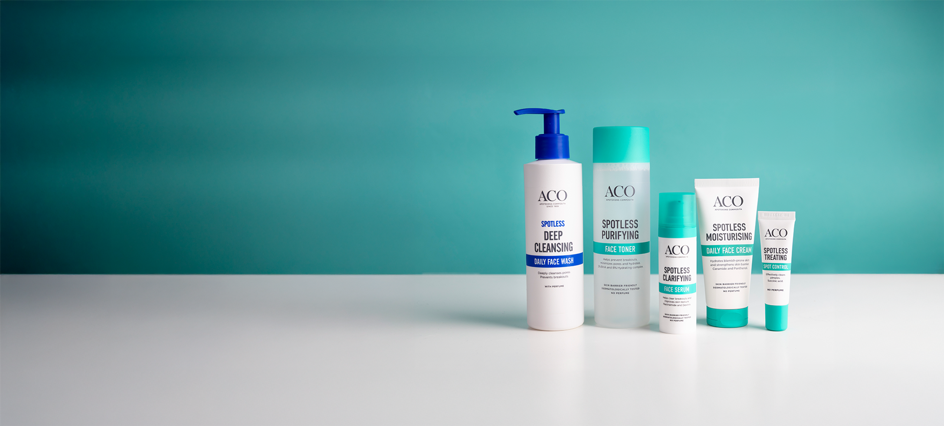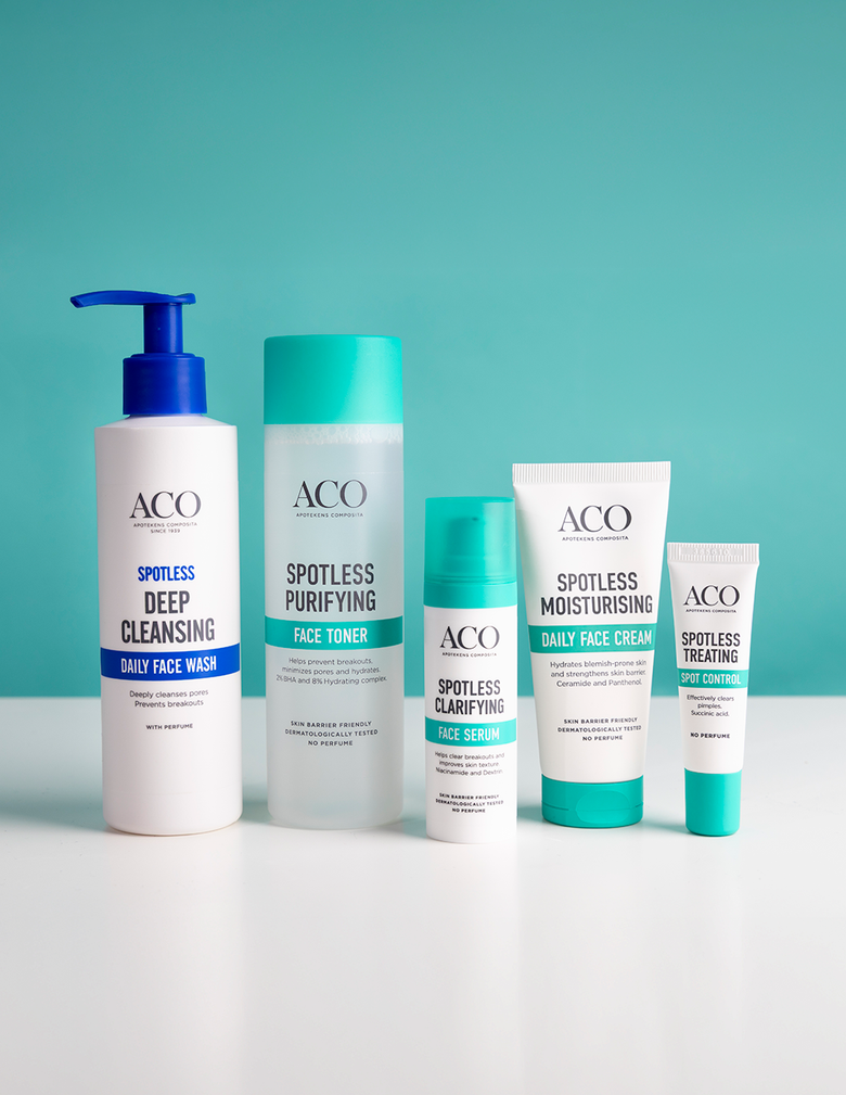 Uudistettu ACO Spotless on täällä - tehokas mutta hellävarainen, uusi räätälöity hoitorutiini, joka auttaa vähentämään finnejä ja ehkäisemään niiden uusiutumista. Uutuustuote Spotless Clarifying Face Serum imeytyy nopeasti, rauhoittaa ihoa ja vähentää epäpuhtauksia.