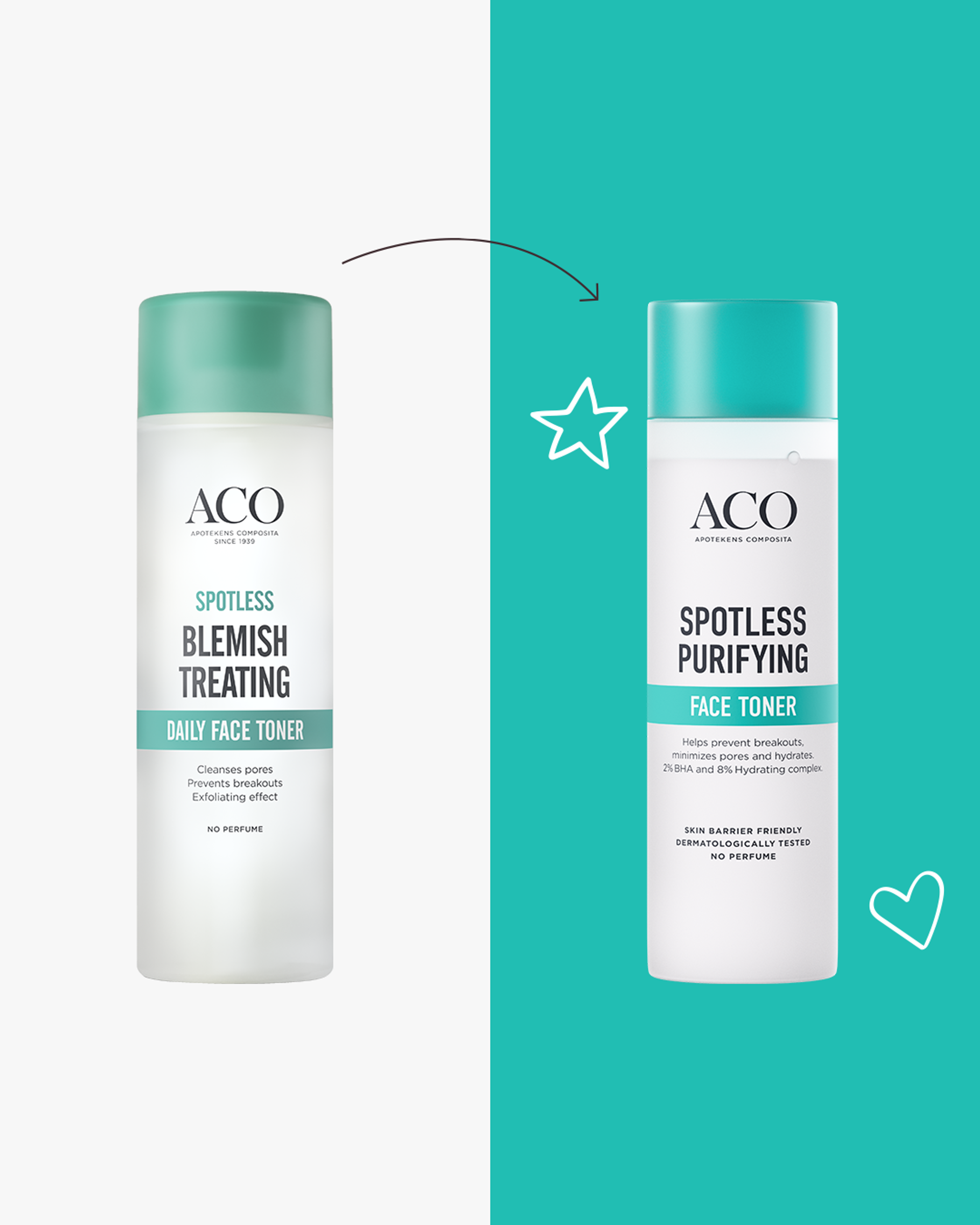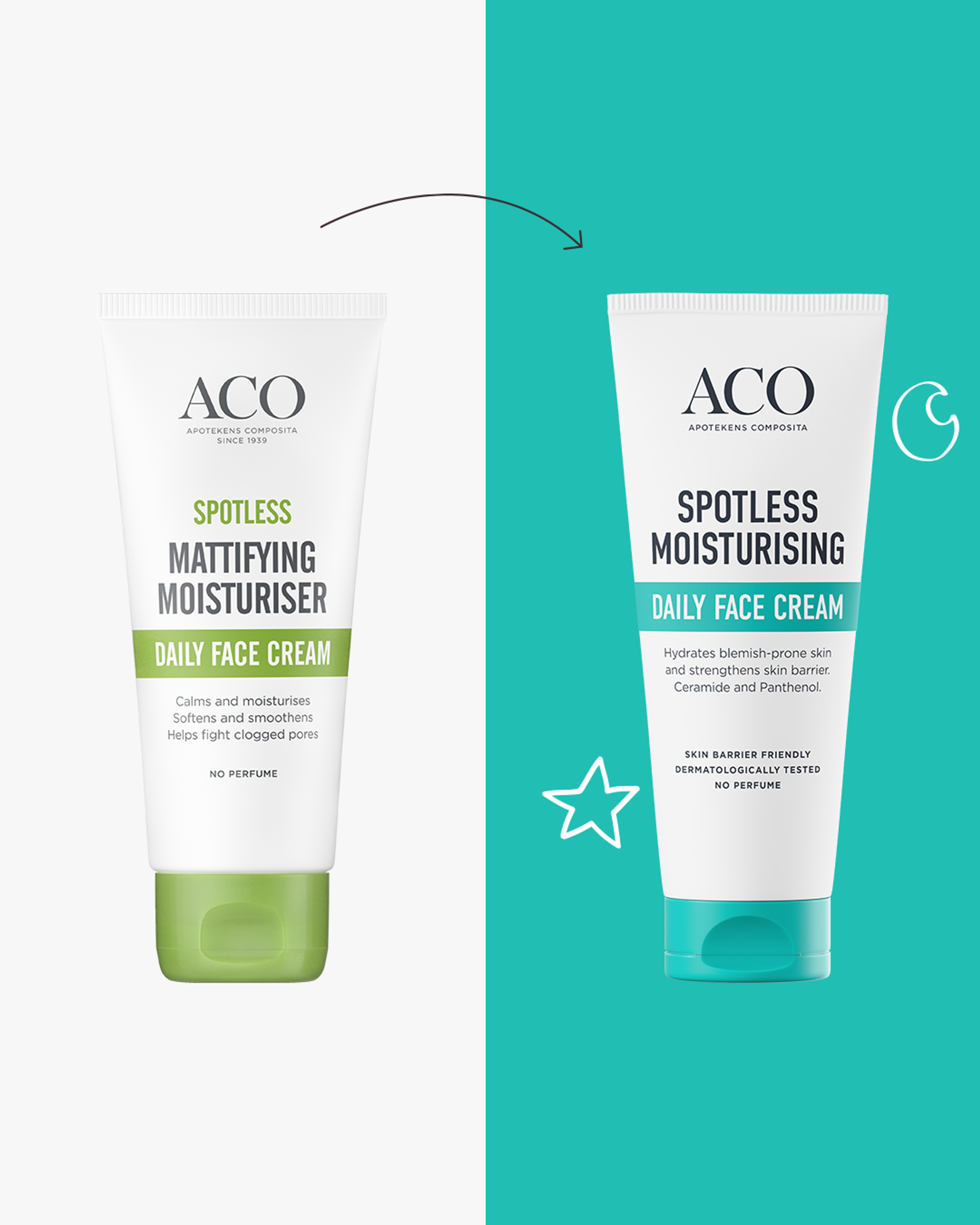 Kasvohoitotuotteiden valinnan pitäisi olla helppoa – jotta löydät tuotteita, joihin voit luottaa joka päivä. Mutta tiedämme, että ihonhoitoviidakossa suunnistaminen voi olla haastavaa. Siksi ACO on tehnyt oikean tuotteen löytämisestä yksinkertaista: suosituimmat tuotteemme on värikoodattu, jotta löydät nopeasti ja vaivattomasti juuri sinun ihotyypillesi sopivan ihonhoitorutiinin. Nyt rakastetuimmat kasvohoitotuotteemme ovat saaneet päivityksen – parannetuilla koostumuksilla ja helpommin kierrätettävillä pakkauksilla. Olipa ihosi kuiva, epätasapainossa, ikääntynyt tai kaipaa vain hieman lisähuolenpitoa – meiltä löydät helposti juuri sinun tarpeisiisi räätälöidyn ihonhoitorutiinin.